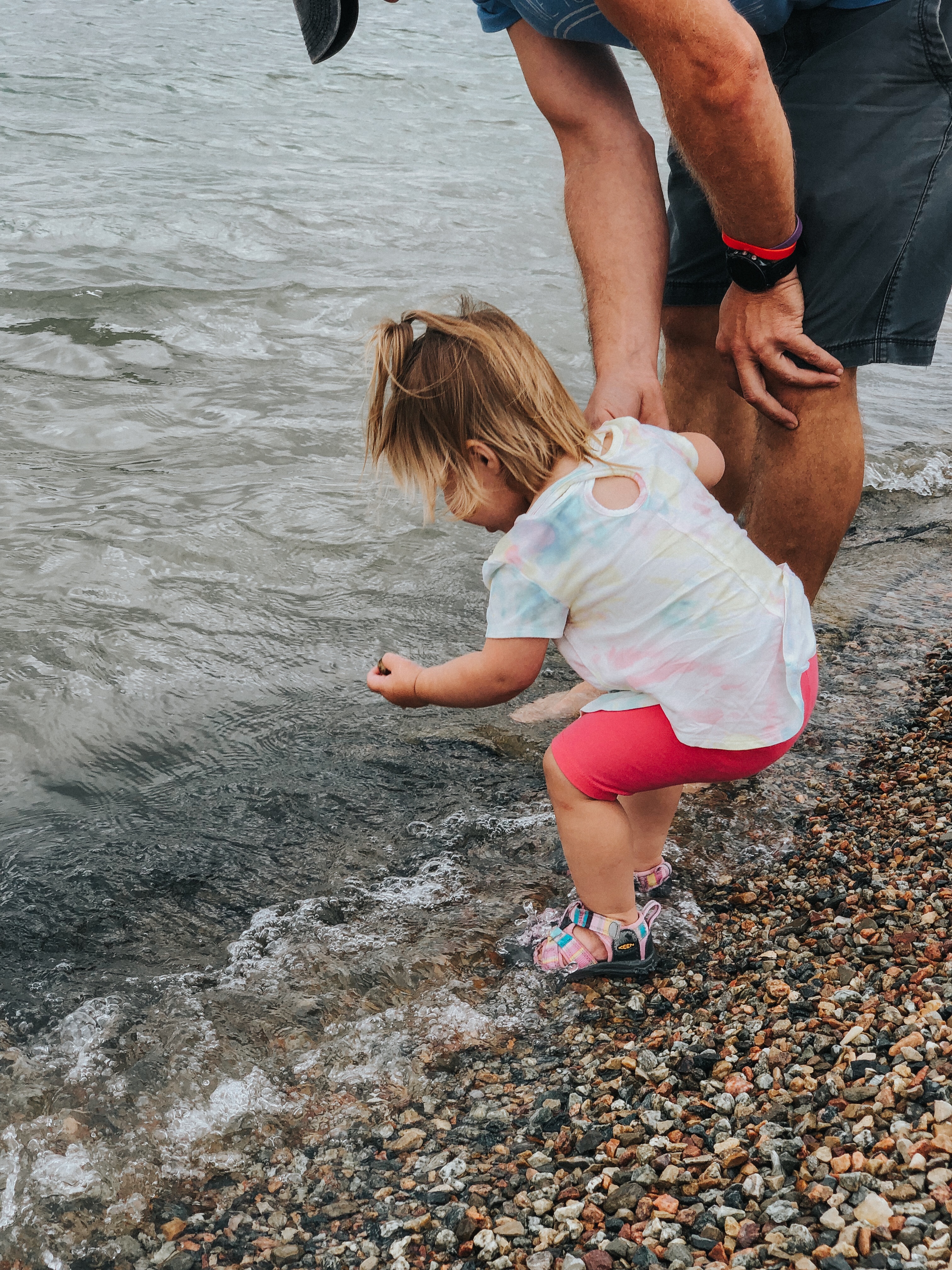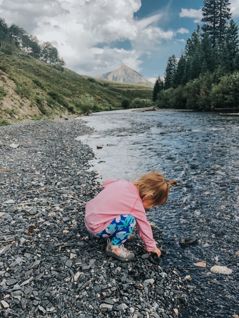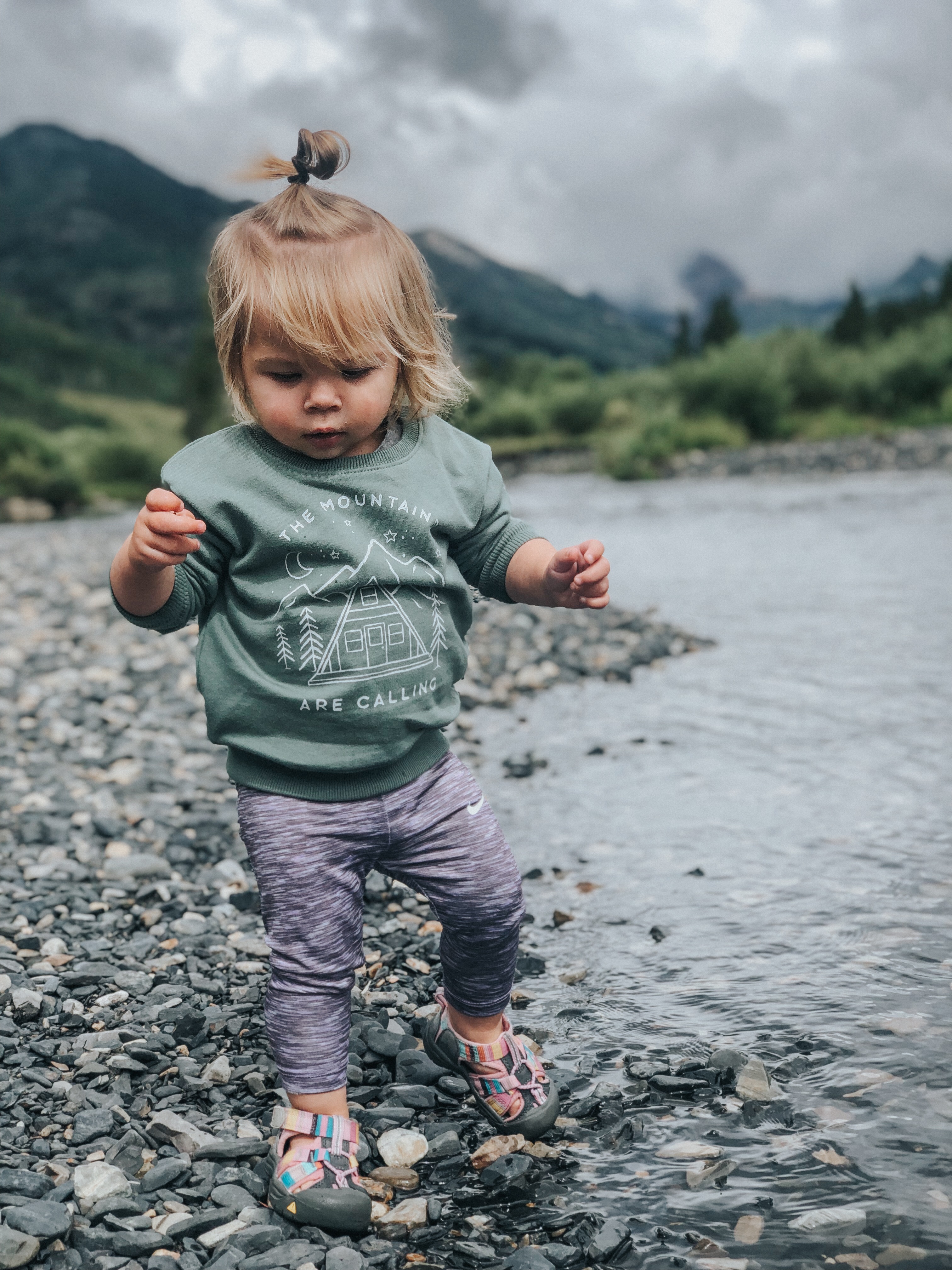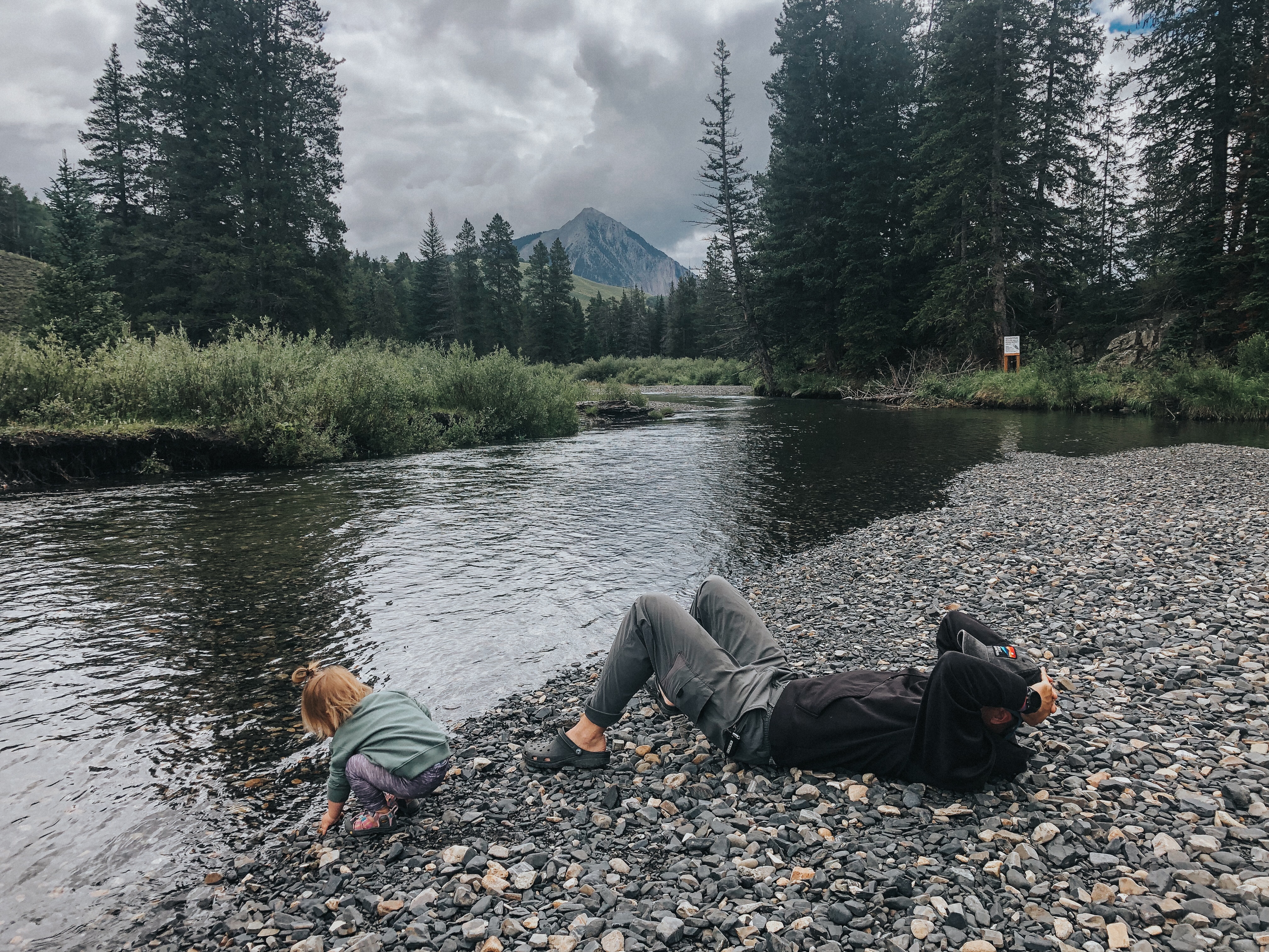 For lunch and nap we went back to the trailer and then when she woke we took her down to Slate River so she could rock her rock throw once again.