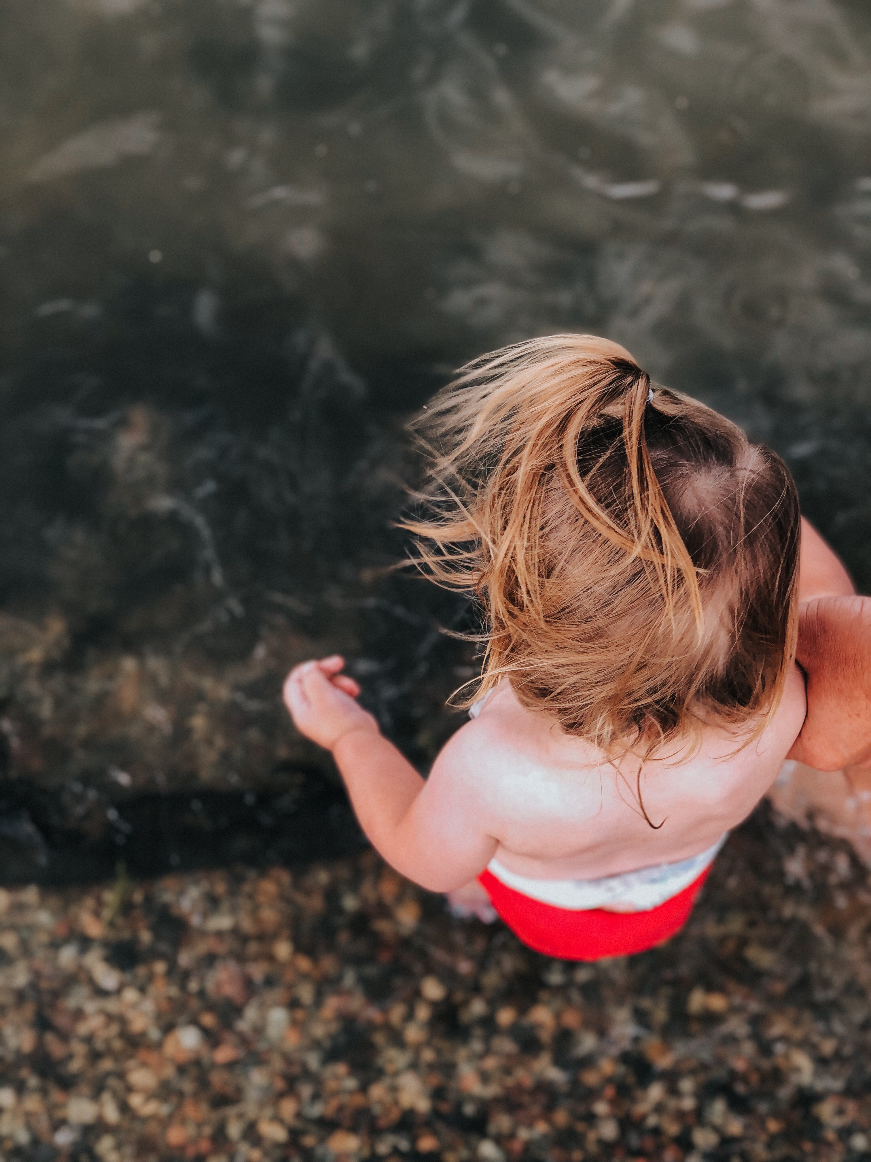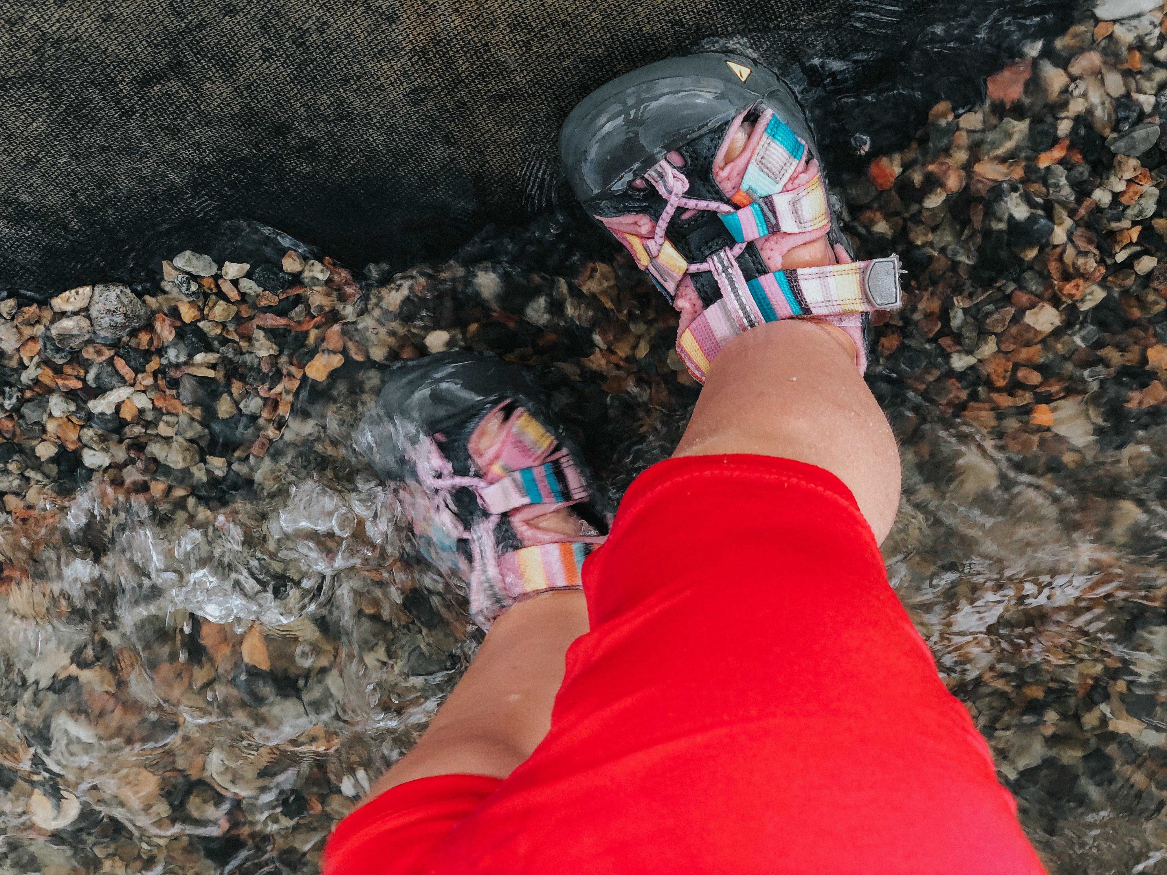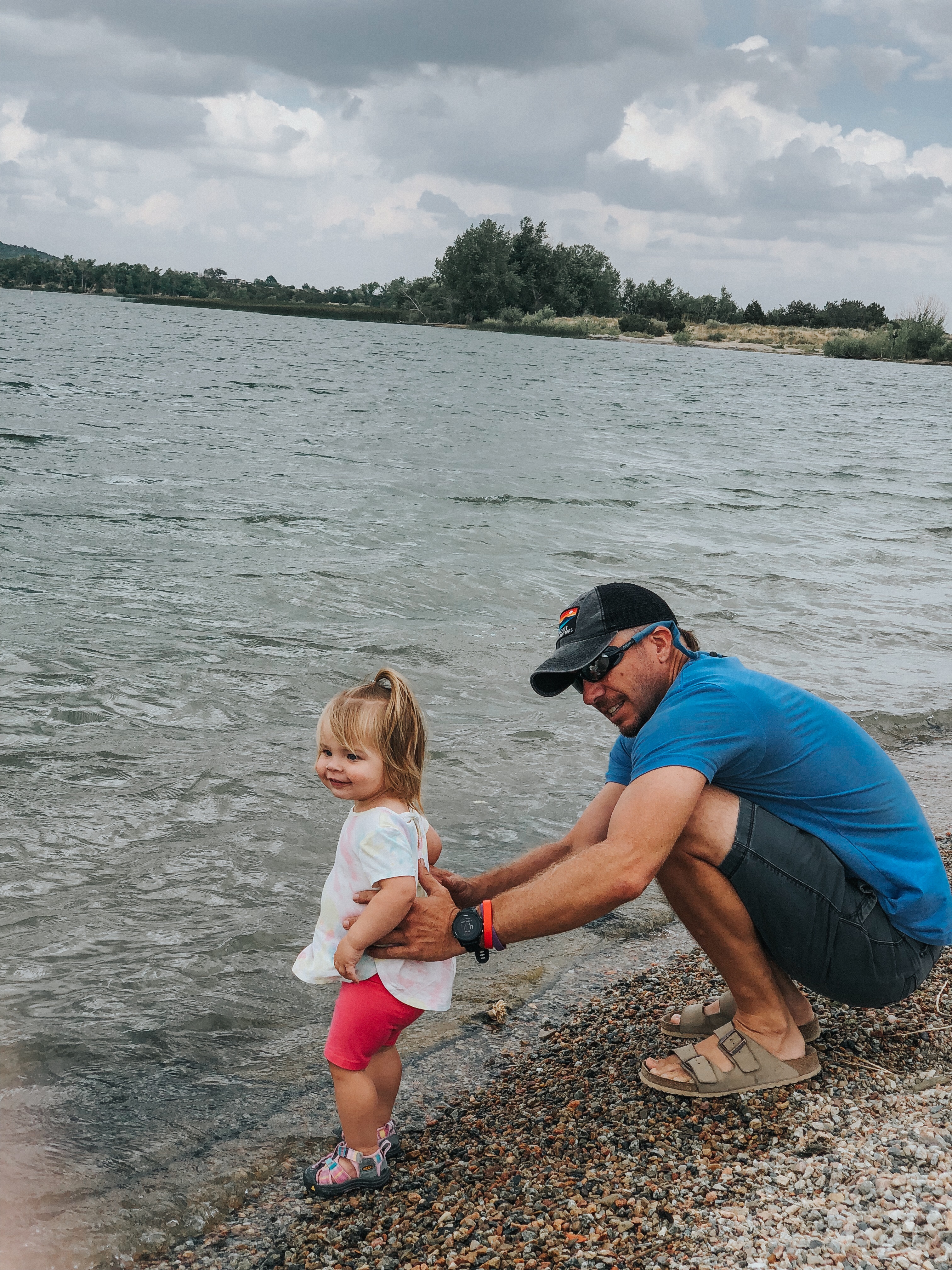 For lunch and nap we went back to the trailer and then when she woke we took her down to Slate River so she could rock her rock throw once again.